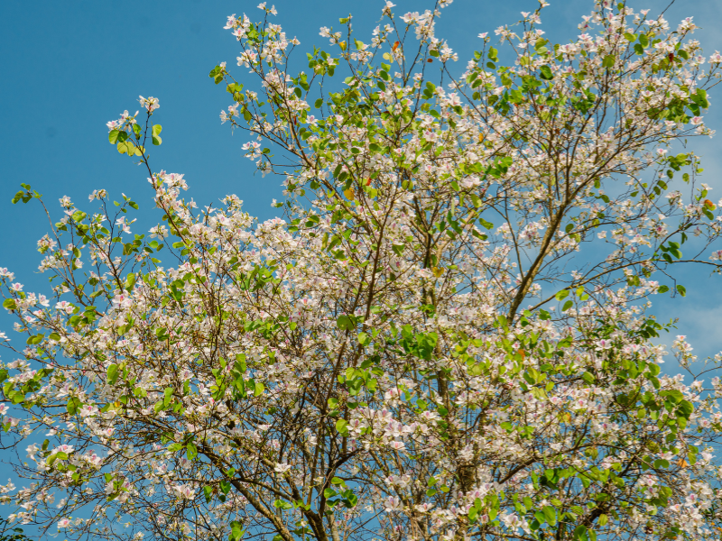 One special thing about ban blossoms is that their blooming season is quite short. The flowers usually reach their peak beauty for only a few weeks in March. After that, the white petals slowly fall, making way for the fresh green rice fields that begin to grow across the Mai Chau valley.