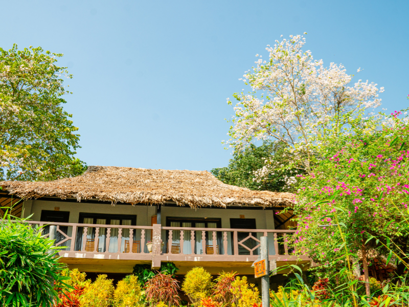 On some mornings, guests only need to open their room door to see soft white blossoms just outside. Walking around the resort, it is easy to find scenic corners filled with flowers, perfect for relaxing or capturing memorable photos of spring in Northwest Vietnam.