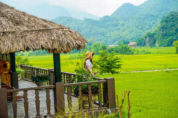 Stay at Mai Chau Ecolodge: For the most authentic and immersive experience, right in the heart of the golden rice fields.