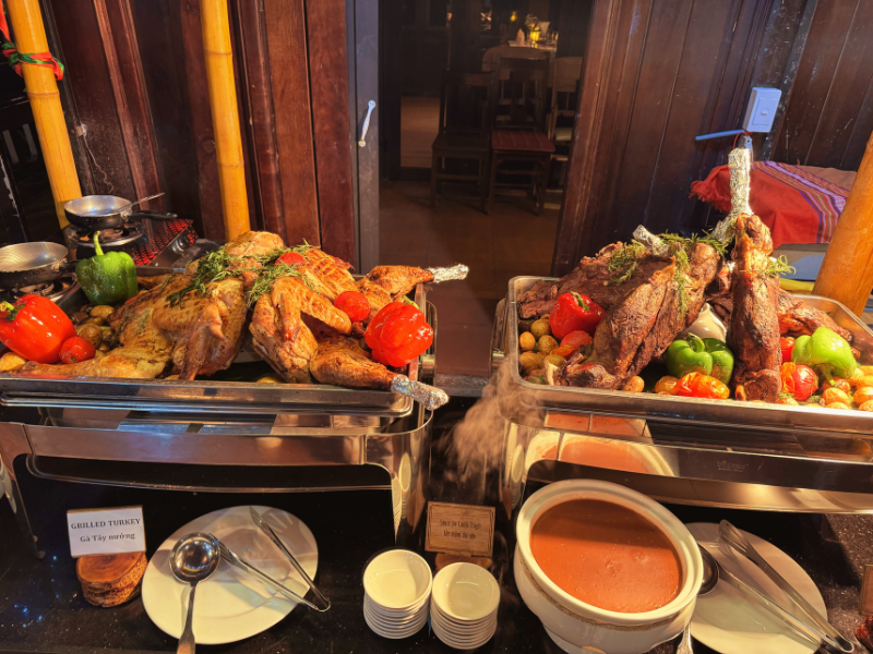 • Buffet tối Countdown đón năm mới: Bữa tối thịnh soạn kết hợp hương vị Tây Bắc cùng các món Âu – Á. Tất cả được chuẩn bị riêng cho đêm 31/12, nhằm mang đến cảm giác trang trọng nhưng vẫn gần gũi.